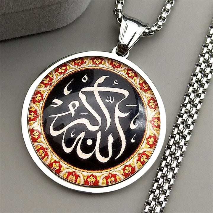 This elegant Allah & Muhammad Glass Pendant Necklace features a shimmering gold-tone finish and a beautifully detailed glass medallion. Designed for both men and women, it highlights sacred Islamic symbols that represent faith, devotion, and spiritual protection. A meaningful accessory for everyday wear and a thoughtful Ramadan or religious gift.