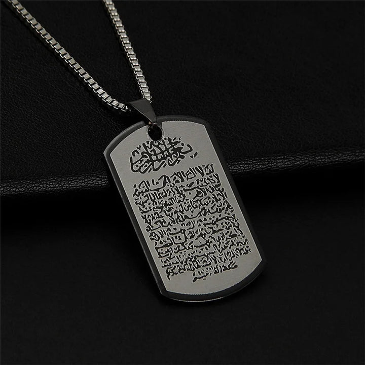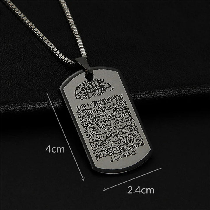 This necklace features a beautifully engraved Quranic verse in elegant Arabic calligraphy, designed for men who appreciate spiritual and meaningful jewelry. Crafted with care from high-quality materials and available in gold or silver tones, it’s a durable and stylish accessory that serves as a daily reminder of faith and guidance. Perfect for everyday wear or as a thoughtful, faith-inspired gift.